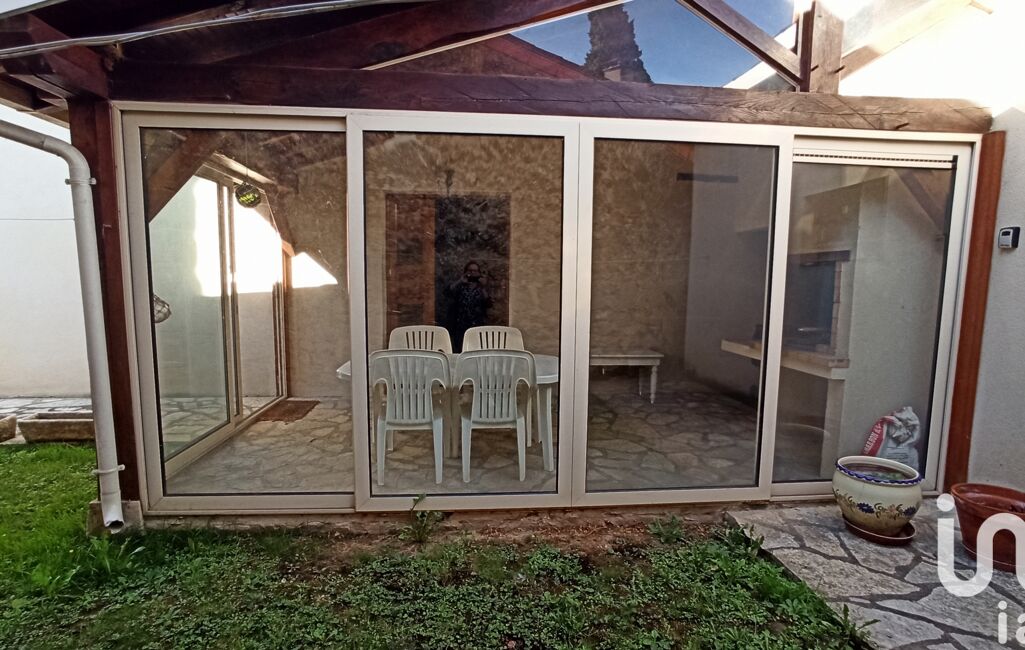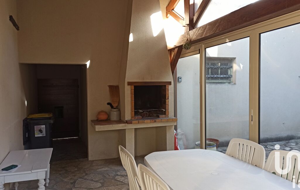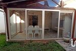 Véranda aménagée avec barbecue, ouverte sur le jardin