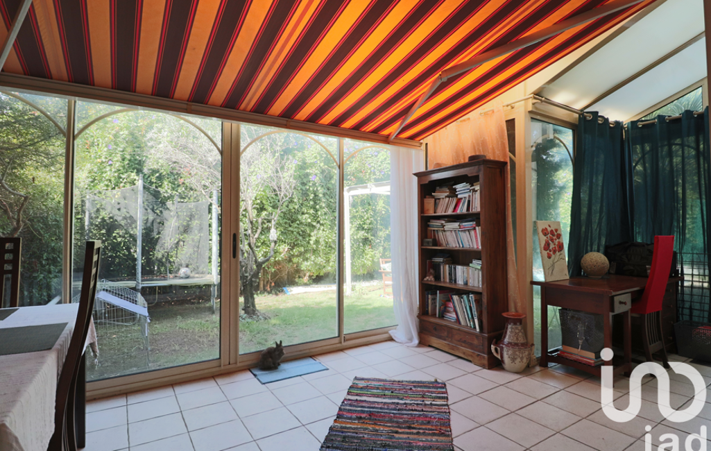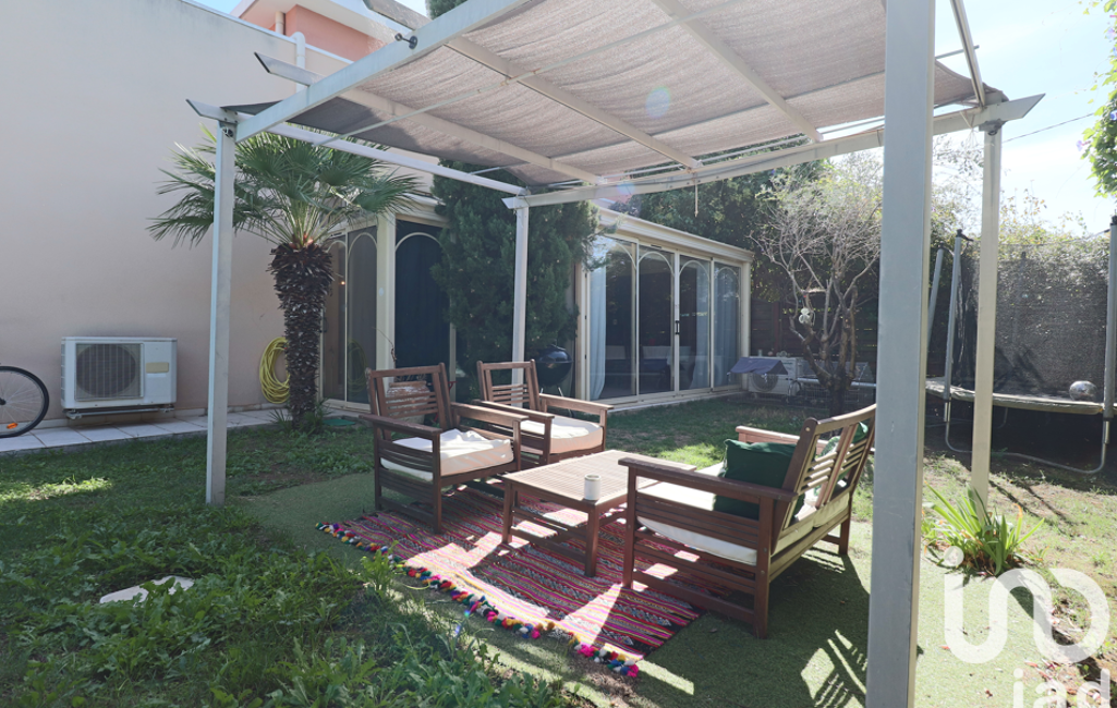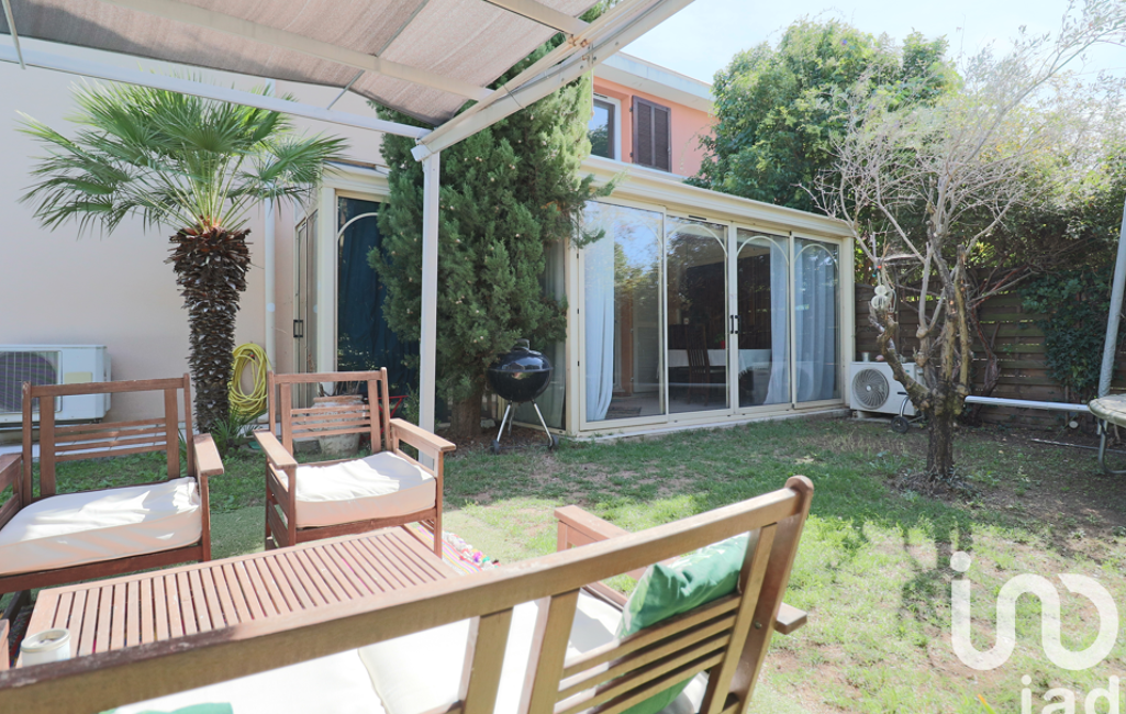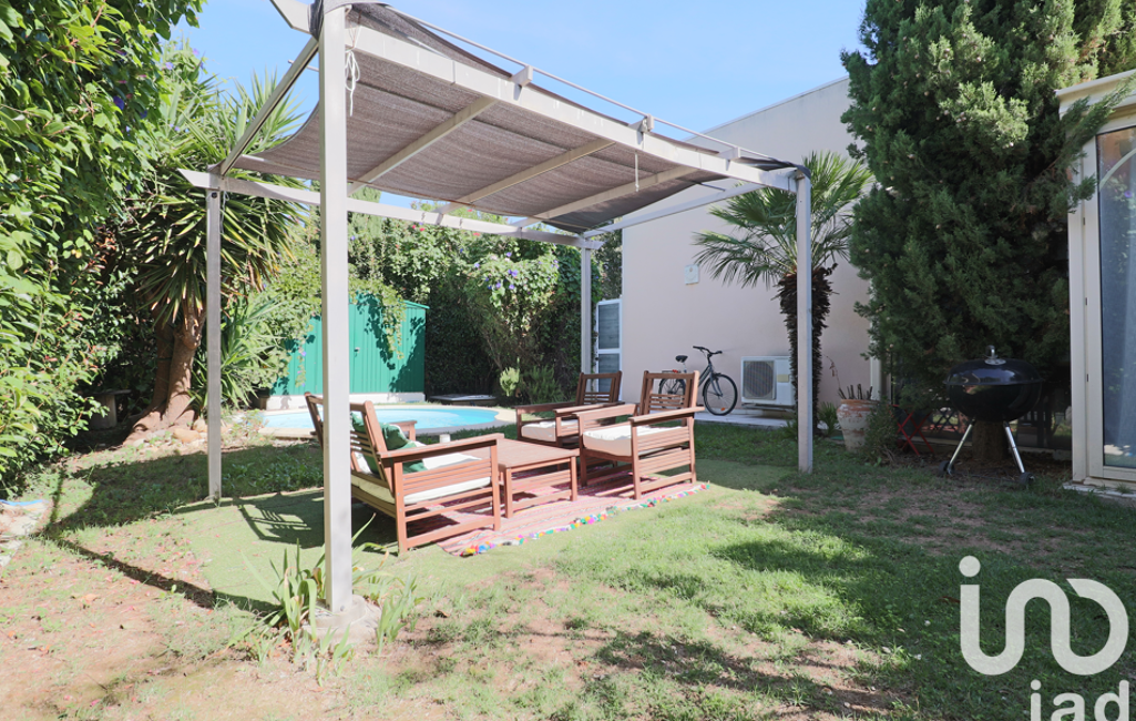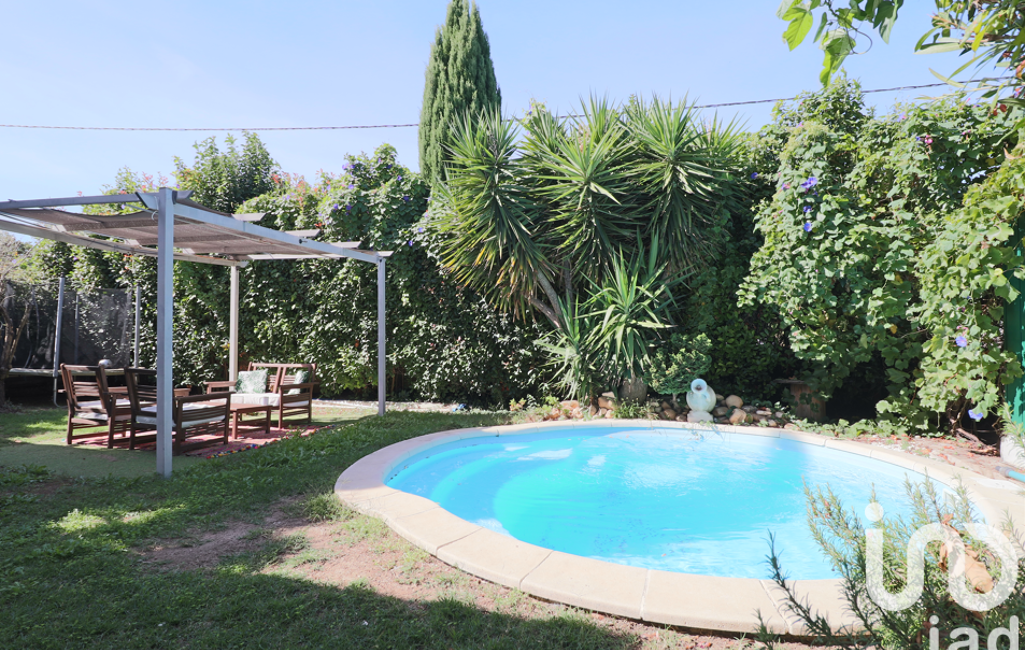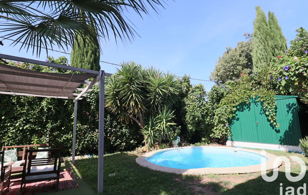 L'extérieur comprend un joli jardin arboré de cyprès, yucca, olivier, palmiers, et bénéficiant d'une piscine de 17m3 au chlore, d'une pergola abritant un salon extérieur, un cabanon métallique pour le rangement, et un accès indépendant à l'extérieur de la maison.