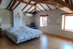 À l’étage, un palier pouvant servir de second salon dessert deux grandes chambres et un WC indépendant.