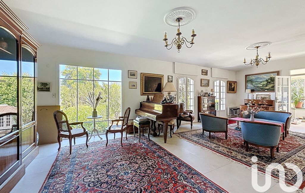 Très grande entrée, salle d'eau, WC indépendant, pièce de vie comprenant un double séjour avec accès terrasse et jardin, cuisine équipée donnant sur une seconde terrasse, un salon d'hiver et un bureau.
