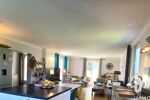 - Salle de réception de 65 m² env. avec coin bibliothèque, coin salon TV, grande table de réception, coin cosy cheminée avec insert bois