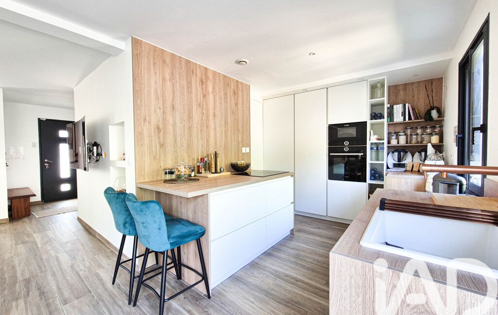 * Entrée avec placard, Salon et salle à manger qui offrent un bel espace de vie, Cuisine ouverte, aménagée et équipée. Cellier/Buanderie.