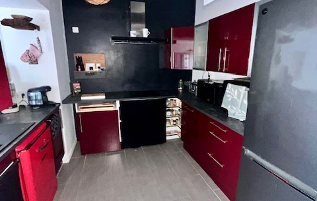 - La cuisine aménagée et équipée au centre de cette belle pièce de vie.