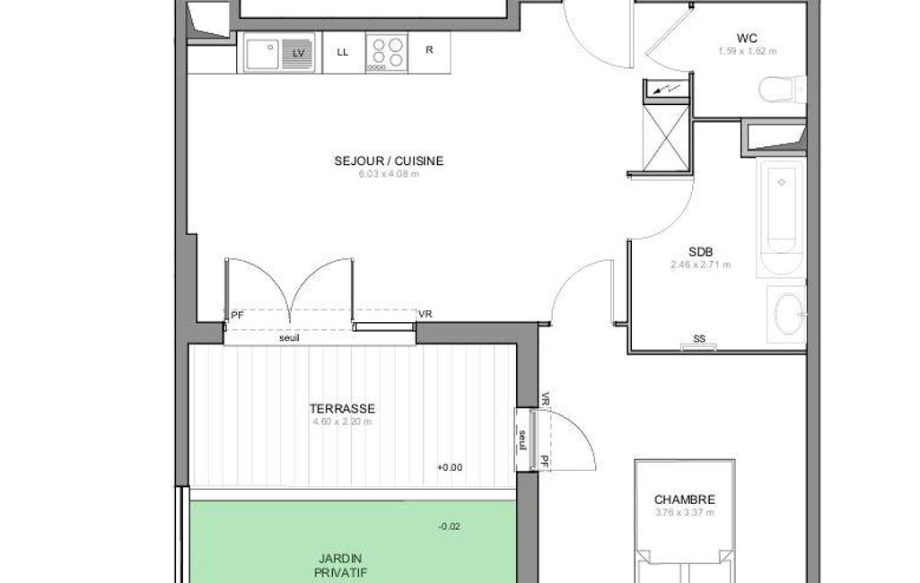 Une terrasse prolongée par un jardin privatif, parfait pour profiter du plein air en toute intimité, recevoir ou simplement savourer un moment de détente.