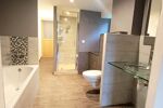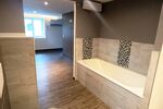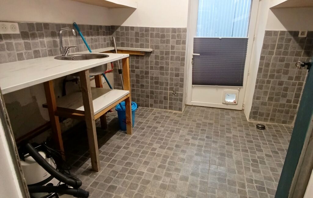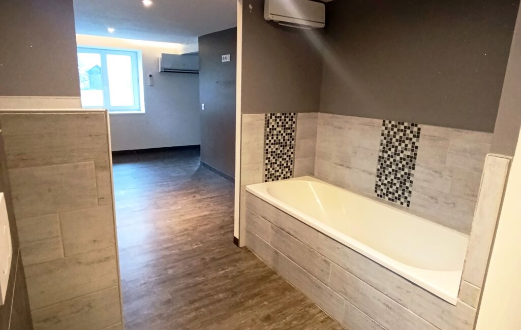 Le rez-de-chaussée dispose d'un salon/salle à manger avec une petite cuisine fonctionnelle d'environ 31m2 avec un poêle à granulés, d'une pièce pouvant servir de bureau d'environ 15m2 ainsi qu'une buanderie d'environ 6m2, d'une suite parentale avec un côté dressing à aménager, une salle de bain avec douche, baignoire et WC d'environ 32m2.