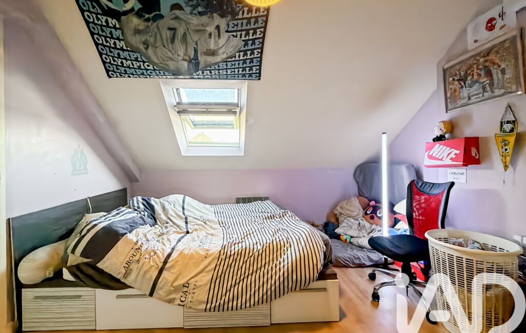 À l’étage, vous trouverez deux chambres, une salle de bain et un WC séparé.
