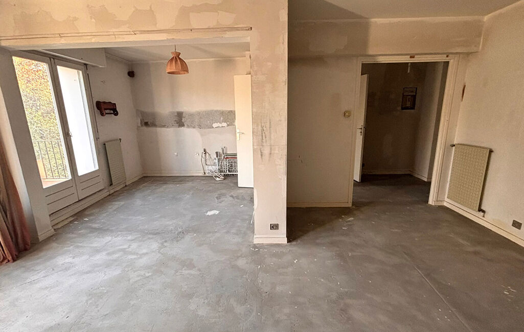 L'appartement se présente à l'état brut : sol béton, murs à peindre, cuisine à créer, tableau électrique à reprendre, double vitrage à installer, ainsi qu'une chaudière d'origine n'ayant jamais été remise en service.