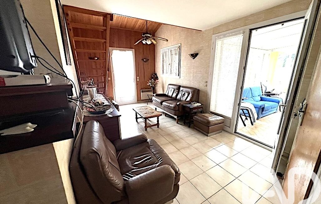 iad France - Jacky Gaillard vous propose: Réf: 1919377. Maison de 78 m2 habitables et de 4 pièces sur un terrain de 565 m2 entièrement clôturée avec portail et Portillon ainsi qu'un barbecue et un puit artésien. Entrée sur salon surmontée d'une petite mezzanine, pièce de vie prolongée d'une véranda donnant sur terrasse orientée EST, deux chambres, cuisine aménagée et équipée, salle d'eau et wc indépendants. Huisseries PVC double vitrage et chauffage électrique,