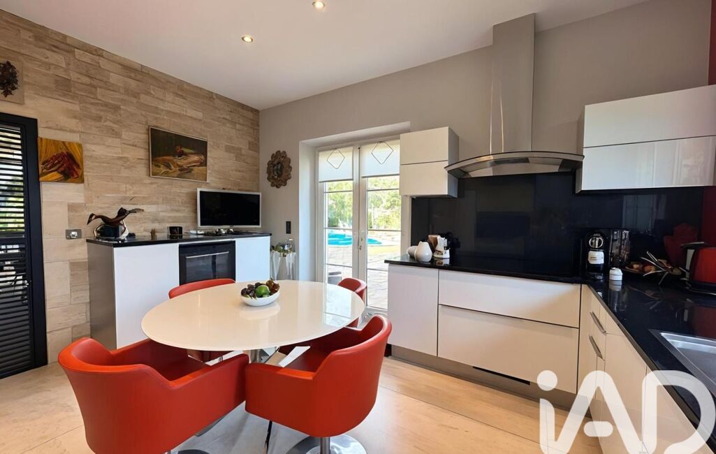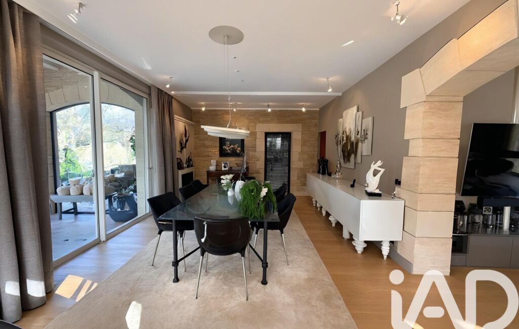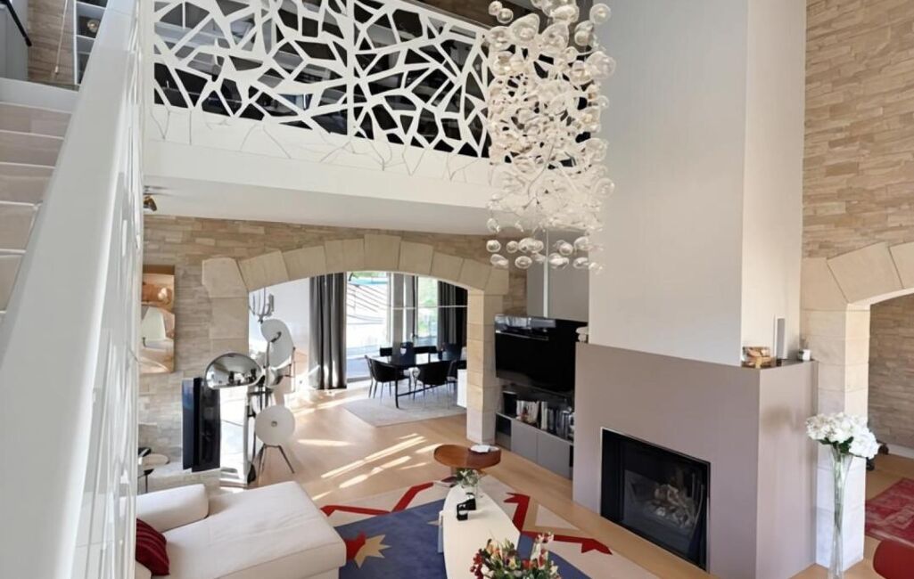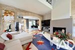 L’intérieur séduit par ses volumes généreux, sa luminosité et la fluidité de sa circulation. La maison s’articule autour d’une vaste pièce de vie de plus de 60 m², salon et salle à manger, largement ouverte sur le jardin et la piscine grâce à de grandes ouvertures, offrant une continuité harmonieuse entre intérieur et extérieur. Les prestations sont à la hauteur du lieu, avec des matériaux et des finitions de haute qualité soigneusement sélectionnés. La cuisine, spacieuse et entièrement équipée, allie élégance et fonctionnalité et bénéficie d’une buanderie indépendante attenante.