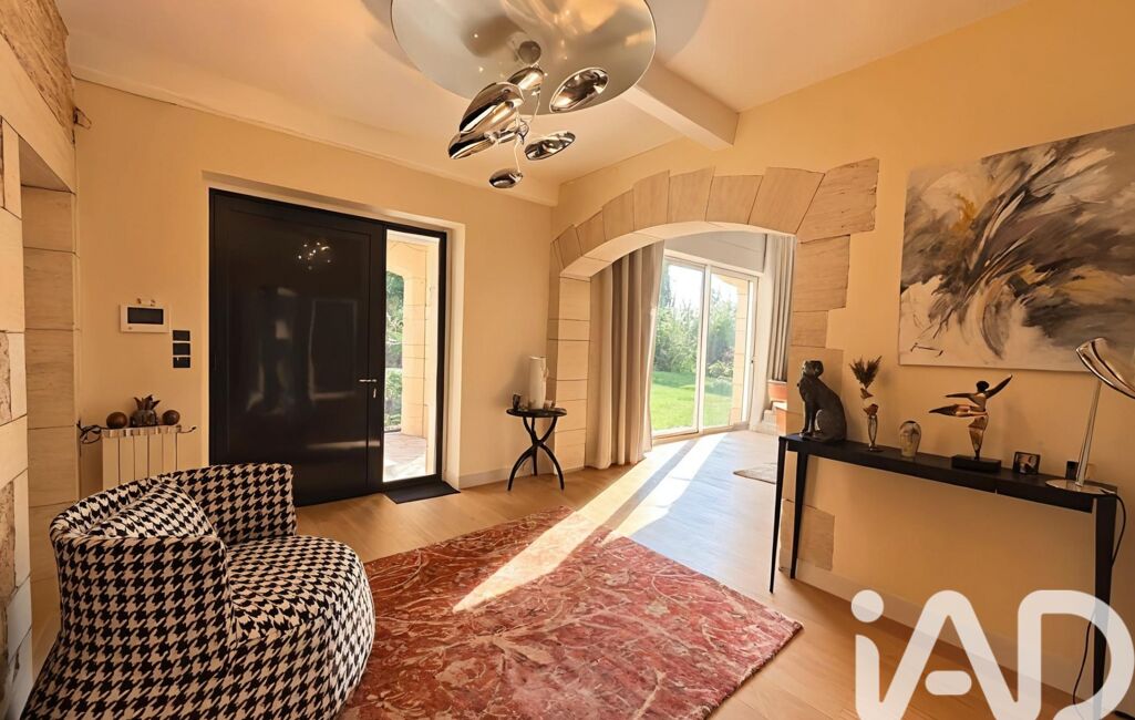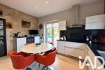 Maison en pierre de caractère, cinq chambres dont une suite en rez-de-chaussée, pièce de vie de plus de 60 m², matériaux et prestations haut de gamme, terrain arboré de plus de 1 800 m² sans vis-à-vis, piscine, garage et sous-sol, volumes, luminosité et calme absolu.