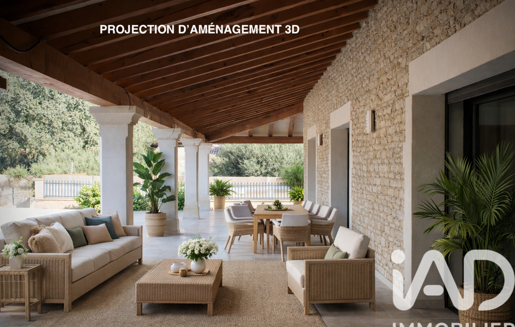 iad France - Loïc Huguet vous propose: À 5 minutes de la ville d’Uzès, cette grande propriété de plus de 7 000 m2 bénéficie d’un cadre naturel d’exception et d’un environnement préservé avec aucune construction possible aux alentours. Elle vous offre calme, espace et intimité absolue.