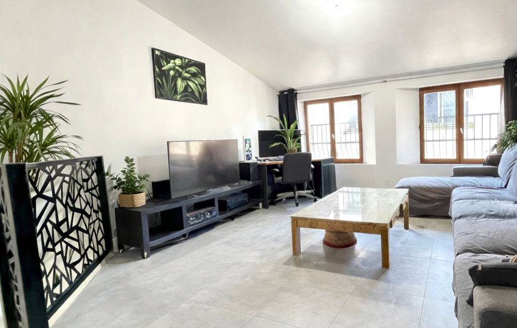 •Deuxième étage : Magnifique pièce de vie lumineuse d’environ 35 m² avec une cuisine entièrement rénovée.