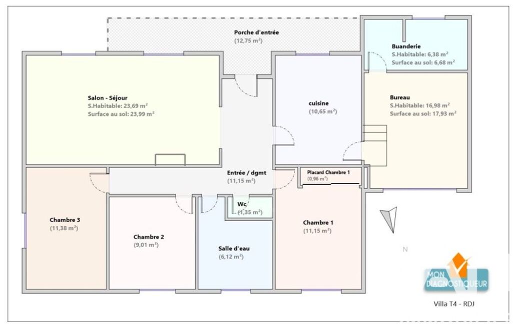 - Surface habitable : 115 m²