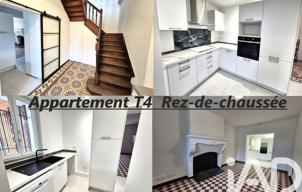 - Un appartement T4 en duplex de 107.08 m² composé au rez de chaussée d'une entrée, séjour, cuisine aménagée équipée et wc avec lave-mains. A l'étage, un vaste palier dessert trois belles chambres, un espace bureau/dressing, une salle de bains et un wc séparés avec lave-mains.