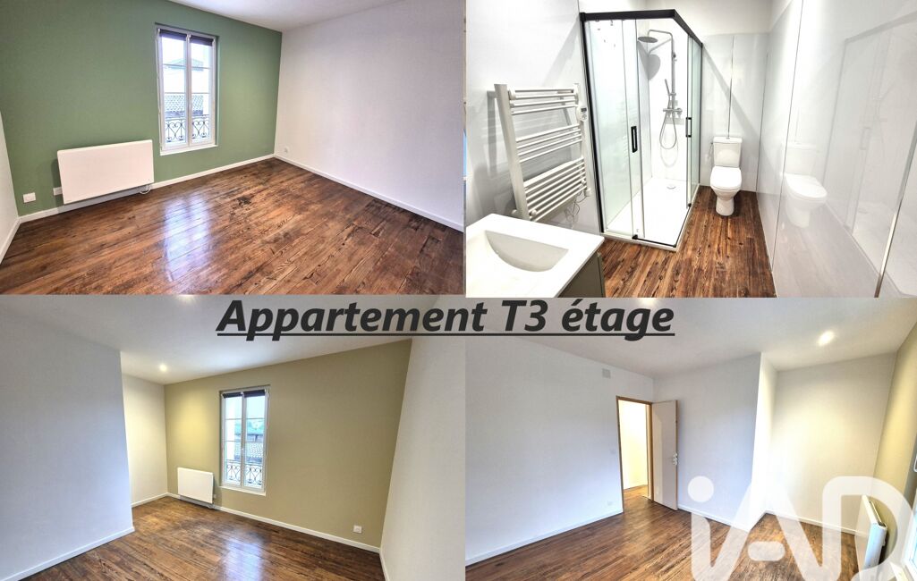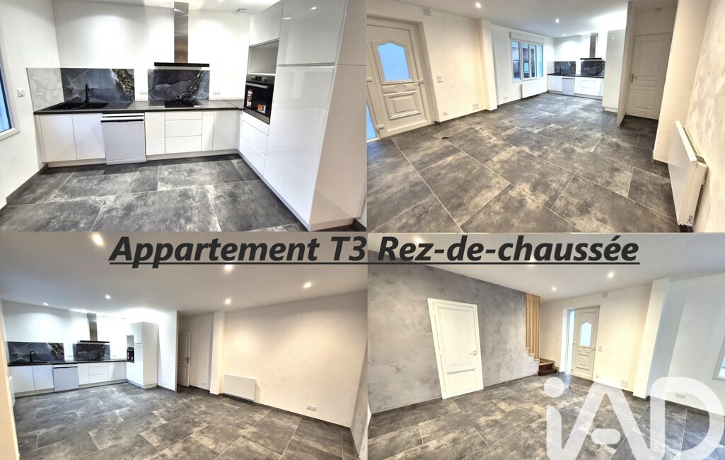 - Un appartement T3 en duplex de 67.06 m² composé au rez de chaussée d'une pièce de vie avec cuisine américaine aménagée équipée, un cellier, un wc avec lave-mains. A l'étage, dégagement, deux chambres, salle d'eau avec wc.