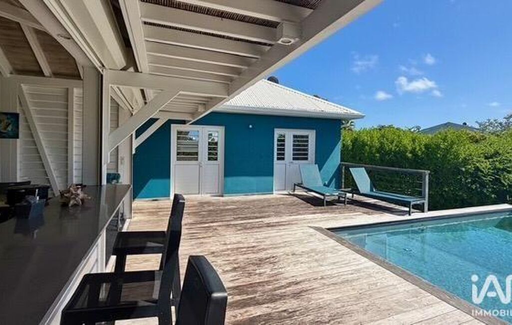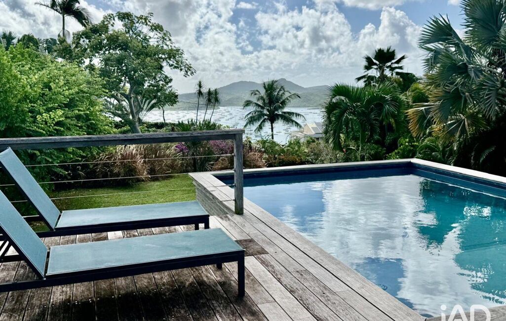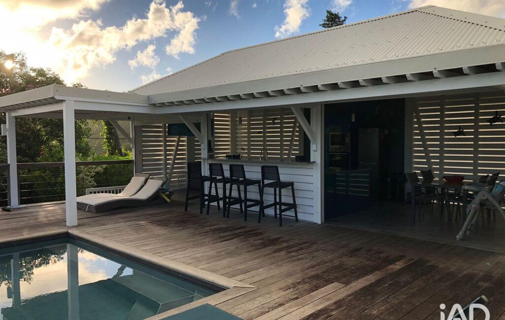 iad France - Sylvie Nathie (06 76 30 25 79) vous propose : Magnifique vue et très belle conception pour cette villa sur demi-sous sol - composée de : pièce de vie avec Cuisine aménagée et équipée, salon, salle à manger sous carbet fermé de volets électriques donnant sur la terrasse avec piscine, 2 suites parentales donnant également sur la terrasse de la piscine.