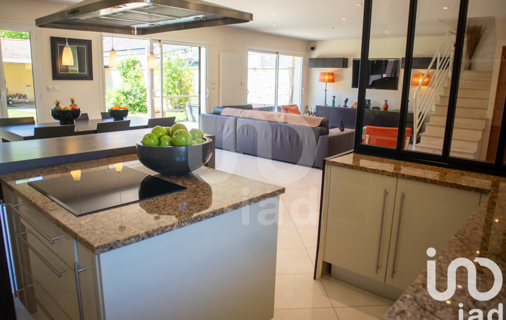 Au rez-de-chaussée, vous découvrirez une cuisine ouverte sur le salon de 63 m² idéale pour concocter de délicieux repas en famille ou entre amis avec accès sur la terrasse depuis les baies vitrées.