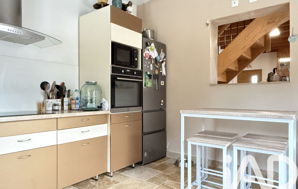 La cuisine, indépendante et équipée, complète l'espace de vie qui s'ouvre sur la terrasse.