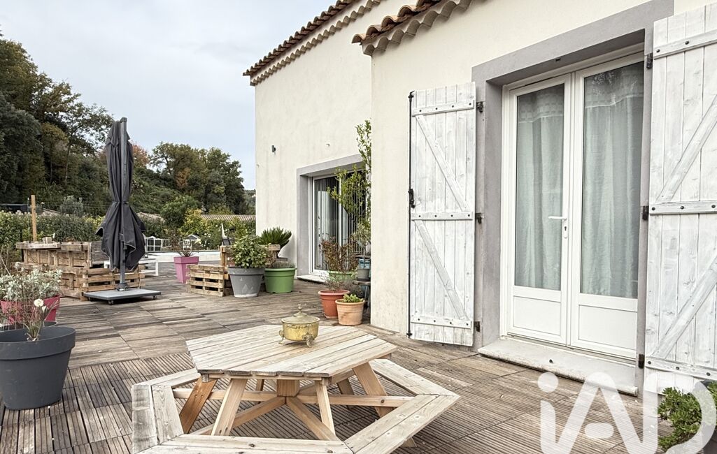 À l’extérieur, la terrasse accueille une belle piscine avec plage immergée et cascade. Un grand cabanon cadastré complète les extérieurs où vous pourrez stationner plusieurs véhicules sans difficulté le portail étant électrique.