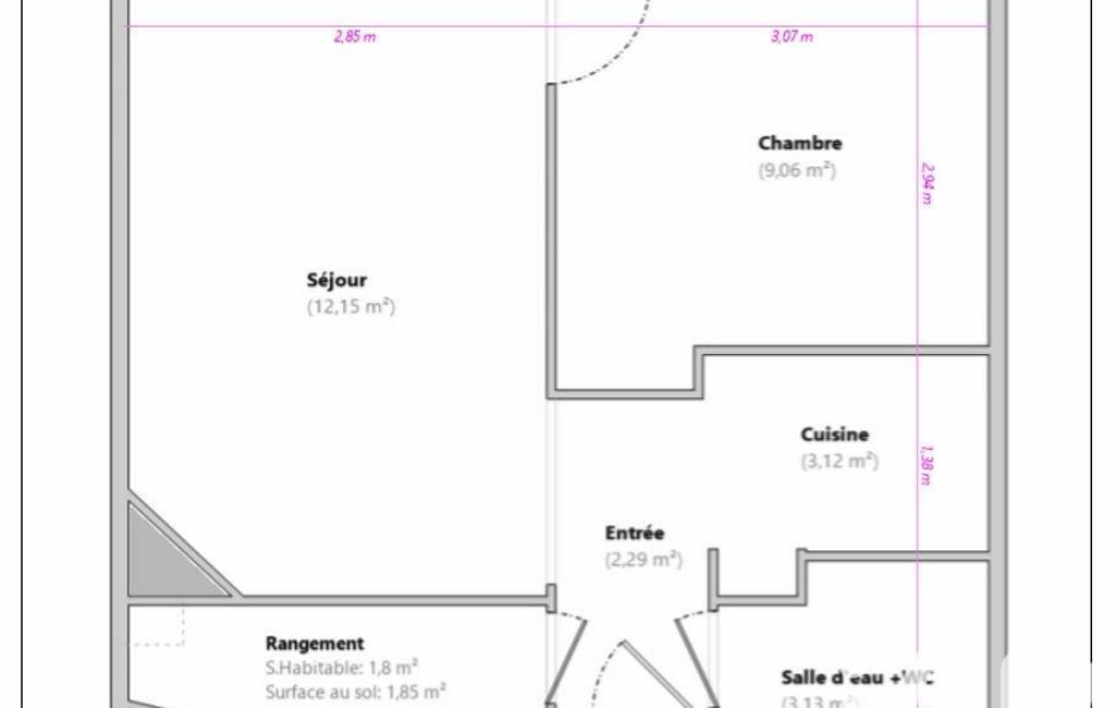 L'espace de vie de cet appartement de 32m² est optimisé et fonctionnel. Il se compose d'un salon, d'une chambre cosy, d'une salle d'eau avec WC et d'une cuisine équipée. Chaque pièce a été pensée avec soin pour offrir un confort optimal au quotidien. Les labels attribués aux différentes parties de l'appartement (cuisine, entrée, chambre, salon, salle d'eau, WC, dressing) témoignent de l'attention portée aux détails.