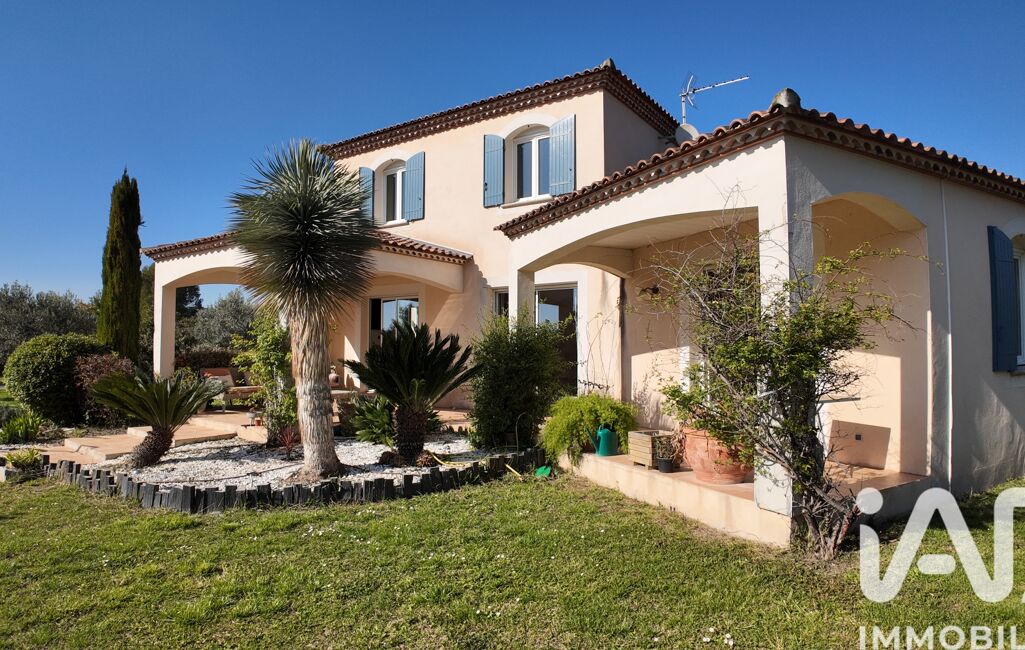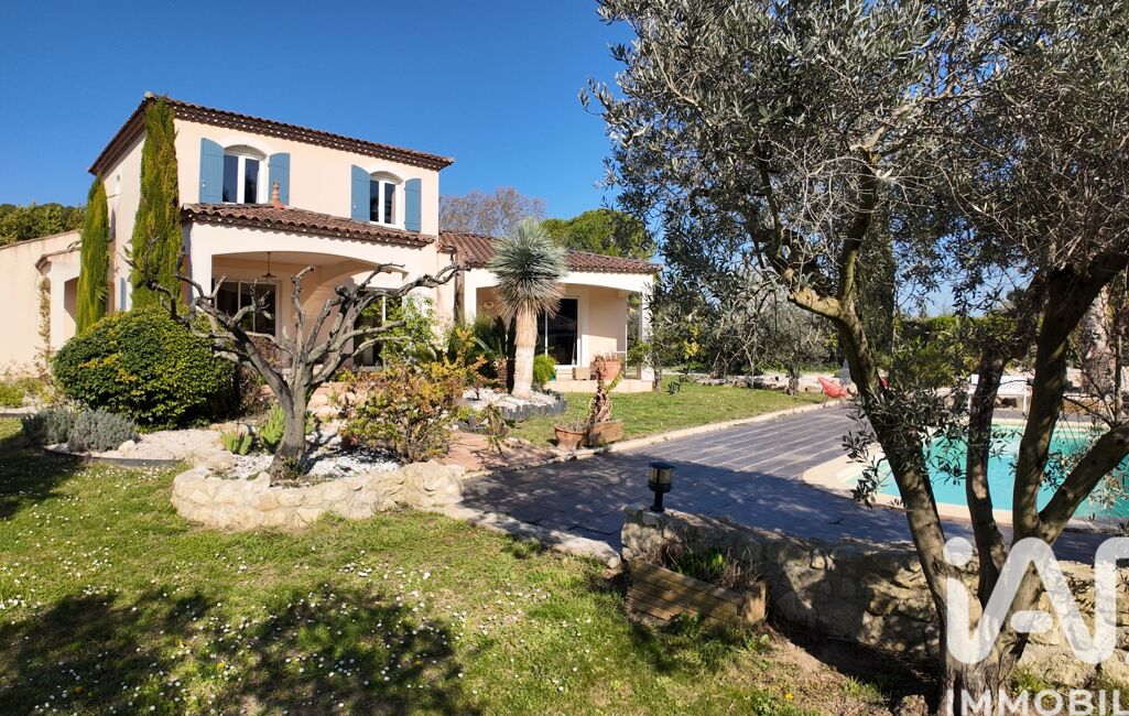 Cette élégante bastide de 2006 est édifiée sur un parc paysager de plus de 3 000 m², sublimé par ses oliviers, cyprès et autres essences méditerranéennes. La propriété bénéficie d’une exposition sud et d’une atmosphère paisible, dans un cadre intimiste à l’abri des regards.
