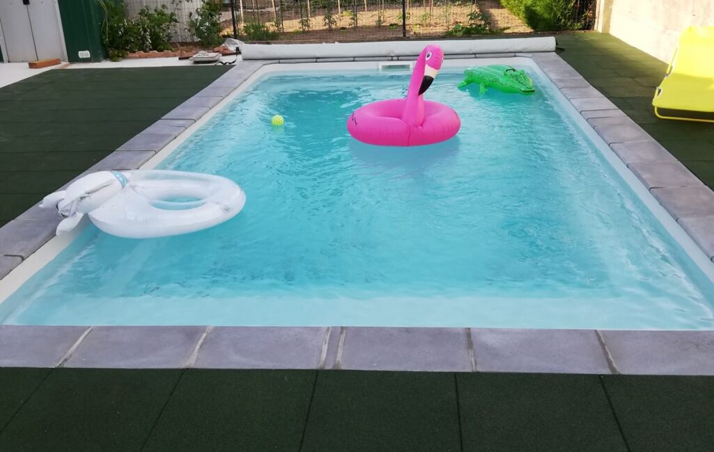 A l'extérieur, vous pourrez profiter des beaux jours avec une piscine (coque) au sel chauffée de 7mx3,5m et son local technique, une grande terrasse et un abri de jardin. Une cour de stationnement complète le terrain clos de 611m2.