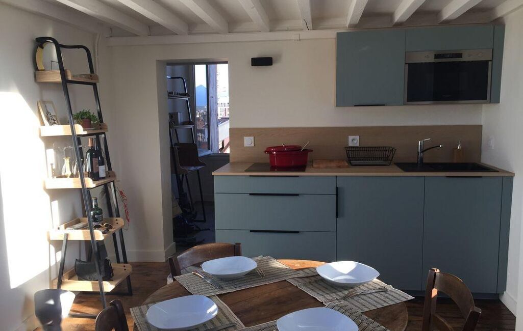Je vous propose ce magnifique studio meublé en duplex totalement atypique, posé sur les toits du centre historique de Grenoble.