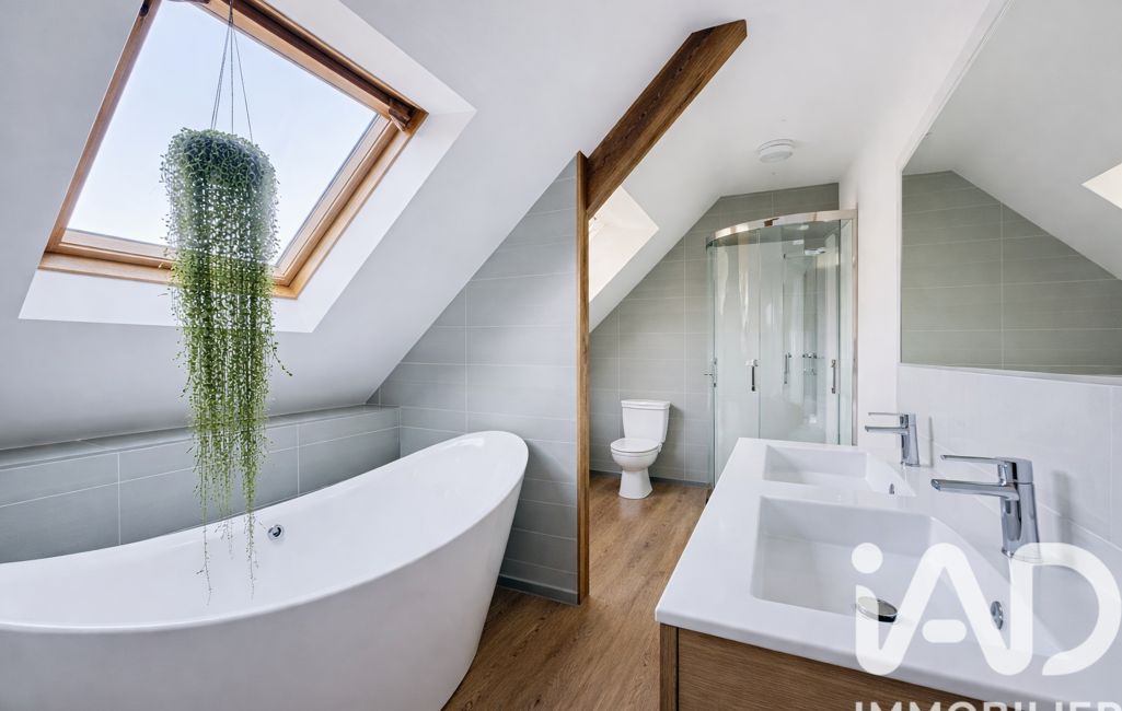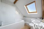 À l’étage : palier, suite parentale avec salle de bain (baignoire, douche et WC) et une seconde chambre.