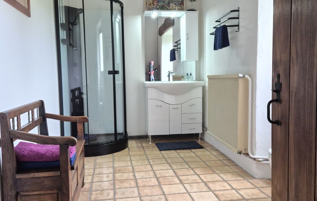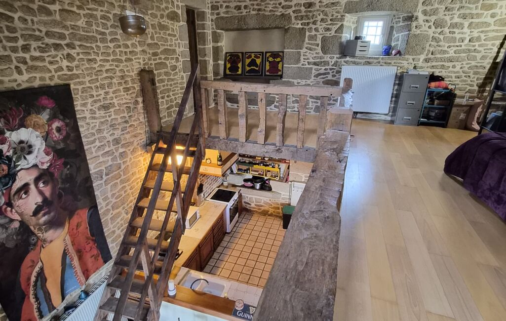 Effectivement, ses grands volumes se composent d'un séjour avec cheminée, une cuisine aménagée et équipée, une salle d'eau avec wc au RDC, une autre cuisine familiale et sa buanderie attenante avec wc. A l'étage, une vaste mezzanine pouvant faire office de bureau ou salle de jeux.
