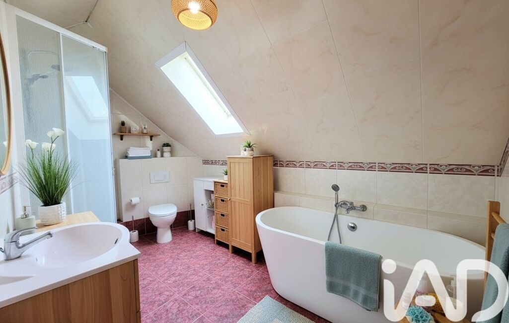À l’étage : une pièce palière en mezzanine de 37 m² dessert 3 chambres dont 2 avec rangements, un grenier, une salle d'eau avec WC, douche et baignoire.