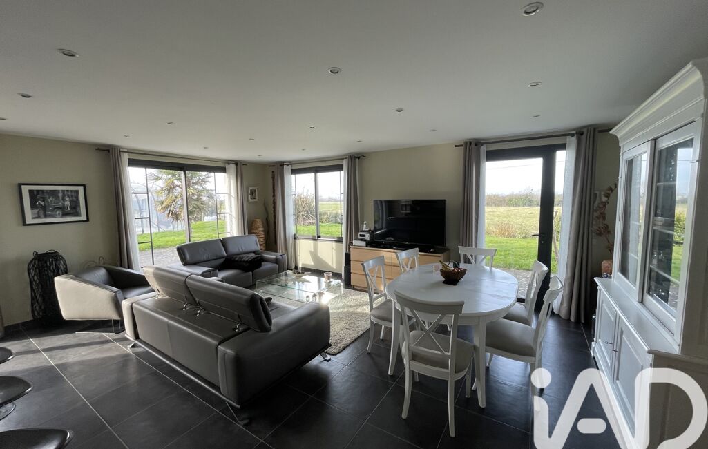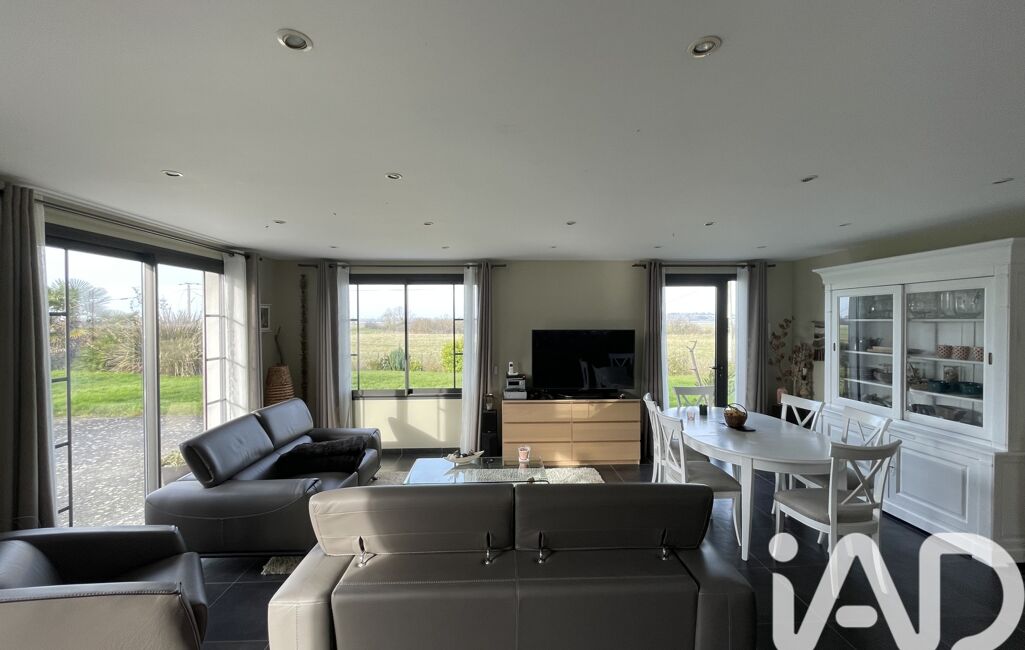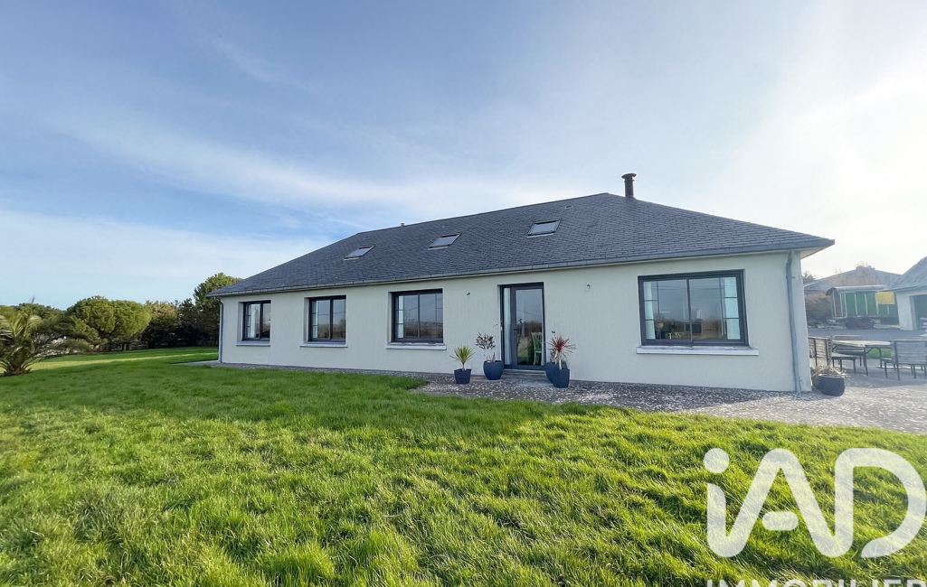 iad France - Emmanuel Delamare vous propose: Non loin du magnifique havre de Regnéville-sur-Mer, au calme avec vue sur la campagne et le havre, maison de plain pied, entièrement rénovée avec piscine chauffée !