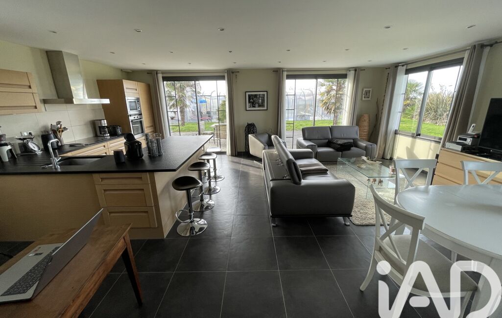 La maison se compose de plain pied de quatre chambres, une spacieuse salle de bain avec douche et baignoire, une buanderie, une cuisine de qualité aménagée et équipée ouverte sur une belle pièce de vie lumineuse.