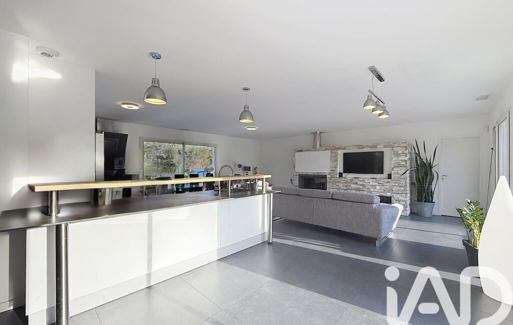 Elle s’ouvre sur une vaste pièce de vie traversante dotée d’une cheminée insert, ainsi que d’une superbe cuisine contemporaine qui séduira sans aucun doute les amateurs de convivialité et de gastronomie.