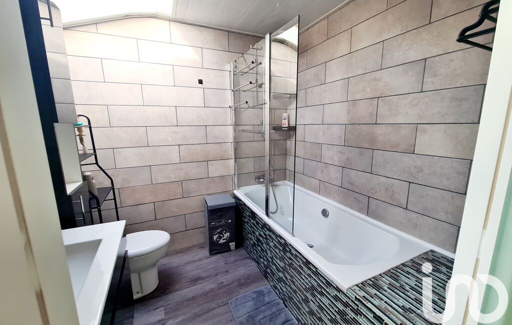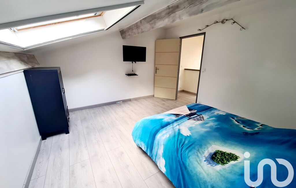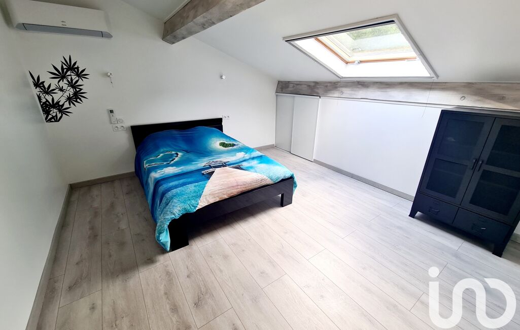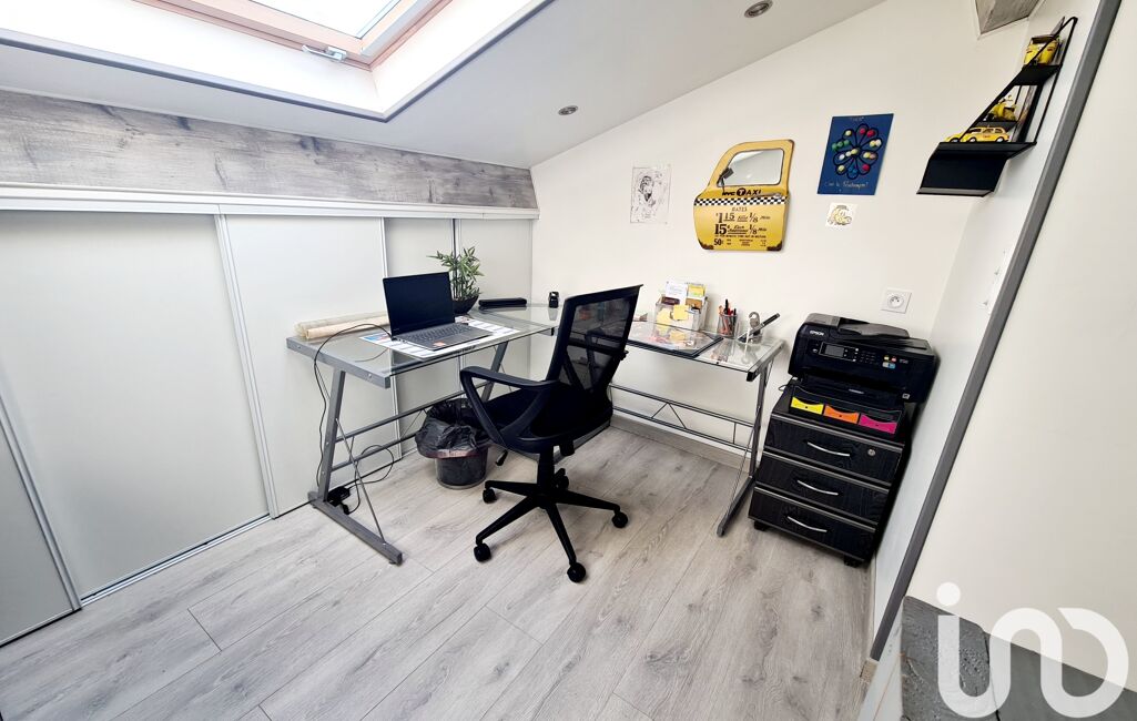 L'étage supérieur refait à neuf donne accès à un espace bureau suivi d'un couloir distribuant une salle de bain avec wc et 3 chambres mansardées .