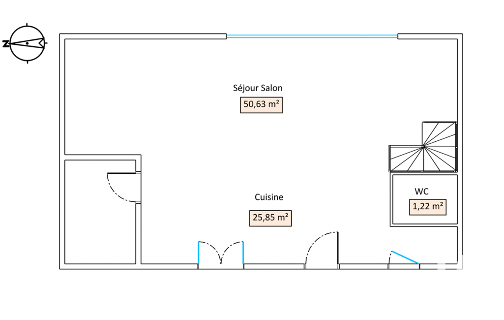 L'entrée dans la maison se fait directement sur une très grand pièce de vie avec cuisine de plus de 75 m2, avec accès directe à la terrasse et sa vue plongeante sur le jardin. Un wc et un garage complètent le rez de chaussée qui bénéficie d'une belle lumière traversante.