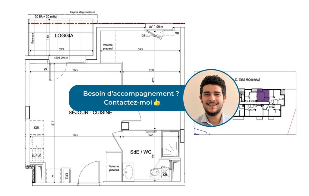 L’appartement proposé est un T2 de 36,25 m² environ habitables situé au 1er étage. Il comprend un séjour-cuisine de 19,45 m² environ, une chambre confortable de 11,80 m² environ et une salle d’eau moderne de 5,00 m² environ équipée d’une douche, d’un meuble vasque et d’un WC. Une loggia de 4,35 m² environ vient prolonger l’espace intérieur, offrant un agréable espace extérieur pour profiter des beaux jours.
