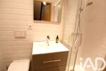 - 1 Salle d'eau avec 1 douche cabine, 1 vasque simple, 1 WC suspendu, VMC, parquet flottant et faïence