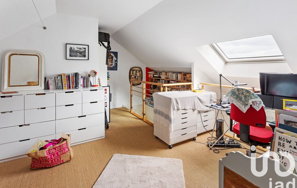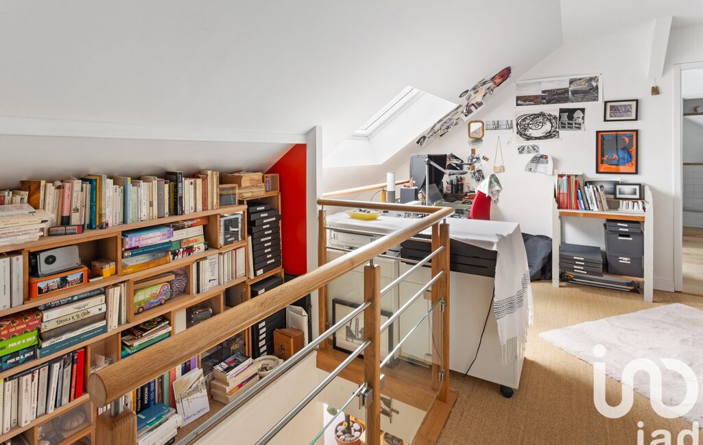 - À l’étage, un vaste espace aménagé en bureau ou coin nuit, offrant une flexibilité d’usage.