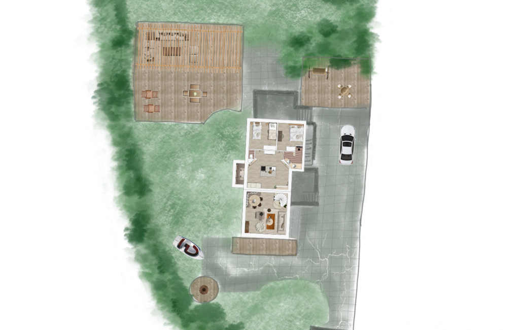La parcelle, entièrement close et sans vis-à-vis, assure une intimité totale dans un écrin végétal, renforçant le sentiment d'être en belle harmonie avec la nature.