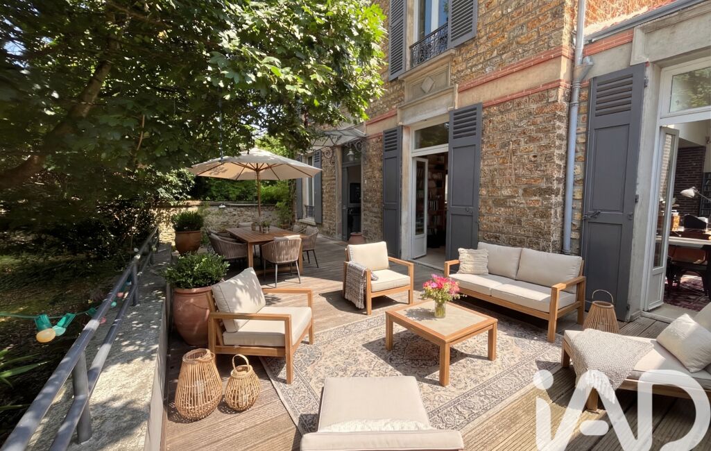 À proximité des commerces et de la gare, cette belle meulière de 1880 est située à l'abri des regards, au calme.