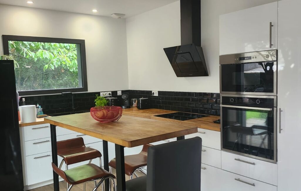 - Cuisine indépendante, baignée de lumière grâce à ses grandes baies vitrées, avec accès direct au jardin