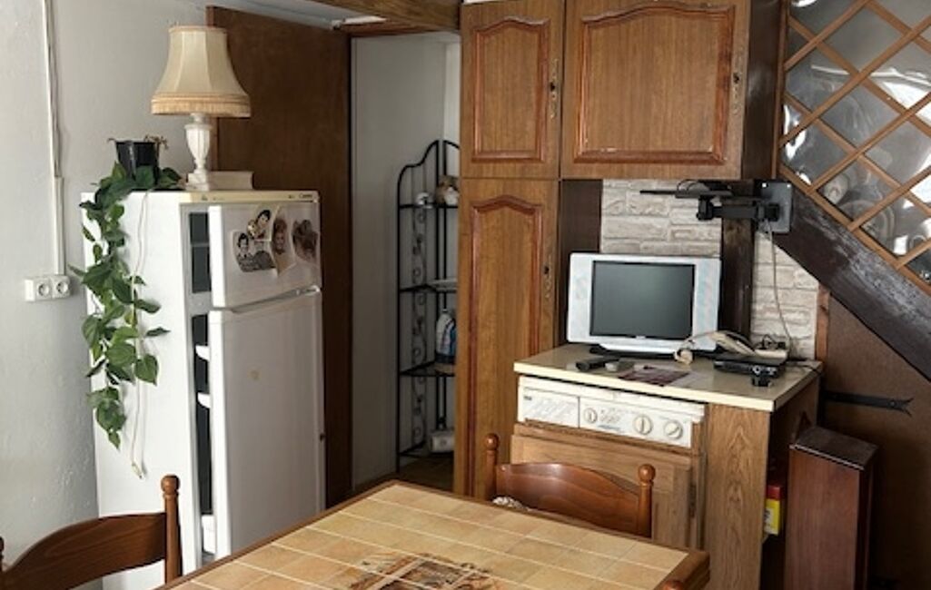 Cette maison se compose d'une entrée , une pièce de vie avec cuisine , un salon , une salle d'eau , une pièce.
