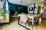 L’entrée ouvre sur un couloir menant à une spacieuse pièce de vie de 45 m² comprenant un salon, une salle à manger et une cuisine entièrement équipée. Cet espace lumineux est mis en valeur par un parquet de qualité présent dans toute la maison et par un poêle à granulés, apportant confort et économies d’énergie.