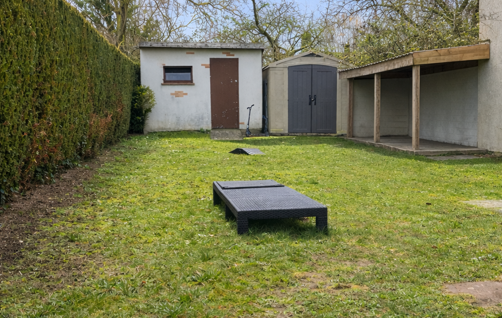 À l’extérieur, une terrasse prolonge l’espace de vie et donne accès à un jardin entièrement clôturé, idéal pour profiter des beaux jours.