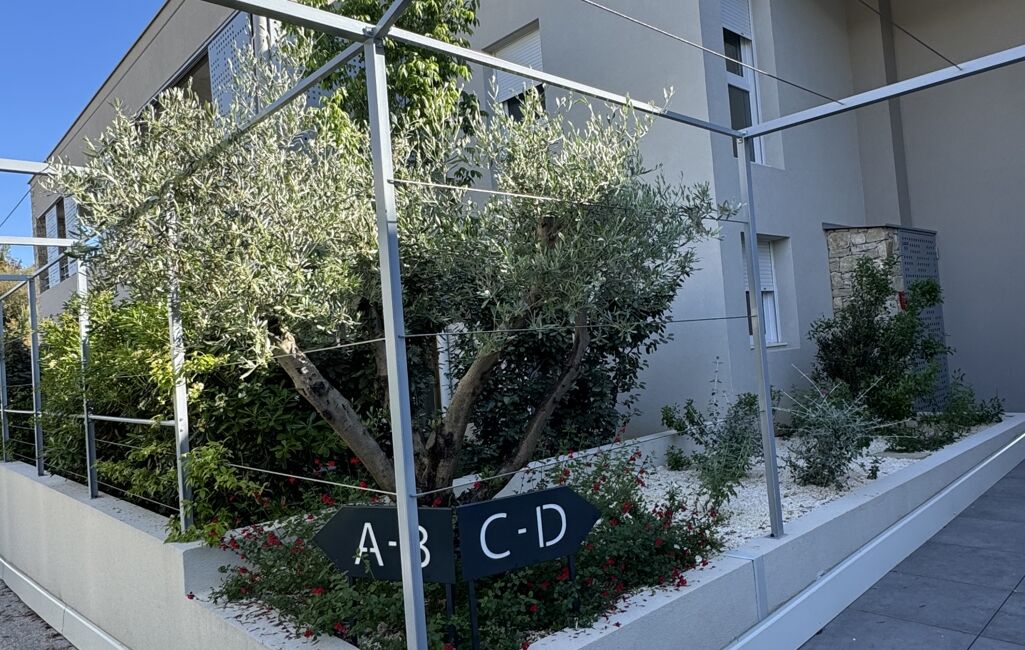 Cet appartement dispose d'un espace extérieur une terrasse de 12 m2 avec de la pierre de garrigue. De plus, vous pourrez stationner facilement grâce à son double garage en sous sol.