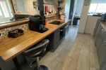 La cuisine, aménagée et entièrement équipée, allie fonctionnalité et modernité pour répondre à toutes vos envies du quotidien.