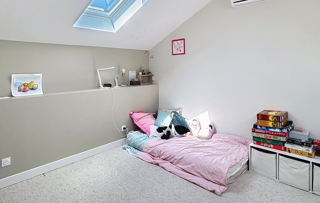 Le deuxième étage est composé d'une grande chambre et d'une salle de bains avec wc. Cette maison bénéficie d'un emplacement privilégié à deux pas de Primerose avec un accès immédiat aux transports (liane 16), aux commerces et aux écoles et collèges renommés de Bordeaux (Grand Lebrun, Assomption, Tivoli). Climatisation dans toutes les chambres.