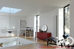 Composée de 2 modules indépendants, elle offre sur 210m2, 2 espaces distincts mais néanmoins reliés entre eux par une large terrasse en bois au rez-de-chaussée et une passerelle à l'étage.