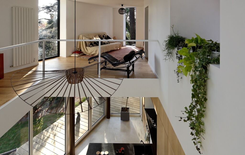 Bienvenue dans cette magnifique maison d'architecte où la nature et la lumière prédominent. Conçue au milieu de majestueux pins, elle a été pensée pour s'intégrer entre les arbres et pouvoir profiter pleinement de l'environnement. Dès l'entrée dans le jardin, il règne une sensation paisible et enveloppante, bercée par les ondulations des aiguilles de pins.