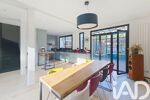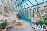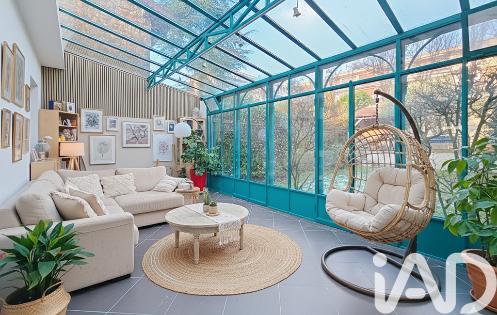 Le rez-de-jardin propose un vaste espace de réception de 60 m², prolongé par cette véranda de 28 m², soit près de 90 m² dédiés à la convivialité. L’ensemble s’ouvre sur un jardin arboré de 120 m², dans un calme absolu, véritable écrin de verdure.